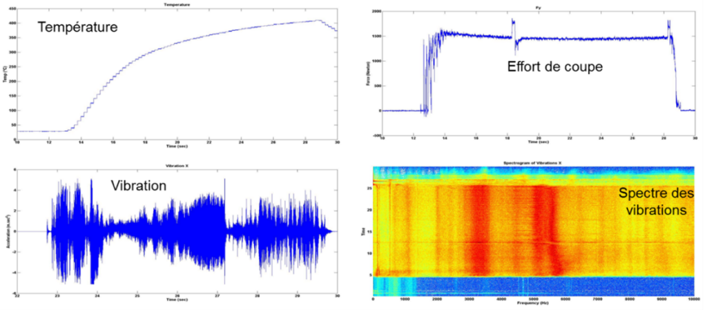 Ce système est utilisé dans le cadre de nos travaux concernant la compréhension de l’influence des paramètres des procédés sur les interactions avec les matériaux. Le suivi in-situ est réalisé avec l’acquisition, au moyen de différents capteurs, des efforts, des couples, des vibrations et des températures générés lors des procédés de mise en forme en fonction du temps.