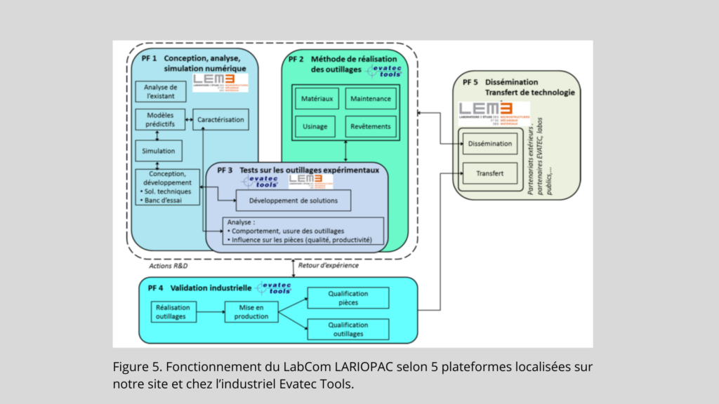 Ce projet a fait l’objet de la création d’un laboratoire commun qui est toujours opérationnel entre notre laboratoire académique LEM3 et l’industriel fabricant d’outils et d’outillages Evatec Tools.